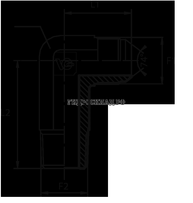 Главная страница→Каталог товаров→Адаптеры и соединения→Адаптер 90° JIC(ш) 1.5/16" - BSPT(ш) 3/4" L2=98 удлин. (Vitillo SPA)