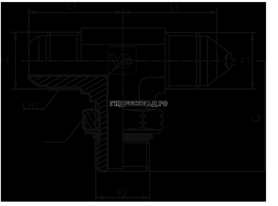 Адаптер тройник JIC(ш) 7/8" - JIC(ш) 7/8" - UNF(ш) 7/8" o.r.+ контргайка (Vitillo SPA)