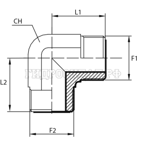 Адаптер 90° ORFS(ш) 11/16" - ORFS(ш) 11/16" (Китай)