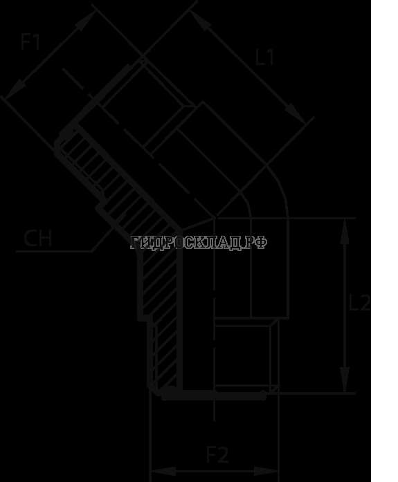 Главная страница→Каталог товаров→Адаптеры и соединения→Адаптер 45° ORFS(ш) 9/16" - ORFS(ш) 9/16" (Vitillo SPA)