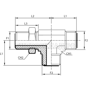 Главная страница→Каталог товаров→Адаптеры и соединения→Адаптер тройник ORFS(ш) 1" верт. контргайка (Vitillo SPA)