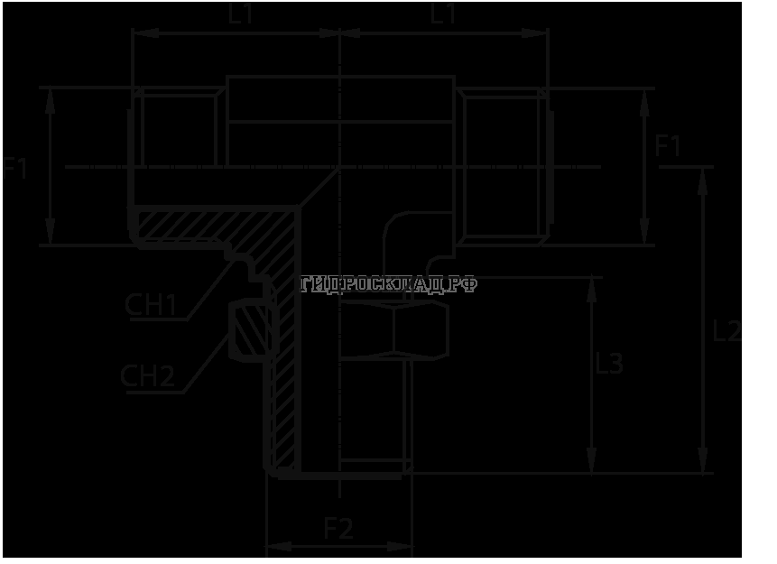 Адаптер тройник ORFS(ш) 1.11/16" гориз. контргайка (Vitillo SPA)
