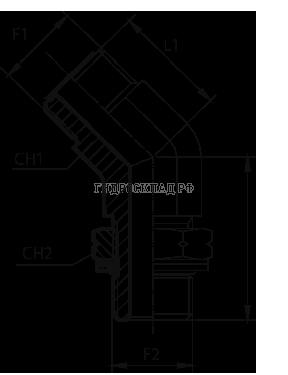 Адаптер 45° ORFS(ш) 1" - Metric(ш) 27X2 o.r.+ контргайка (Vitillo SPA)