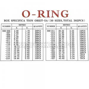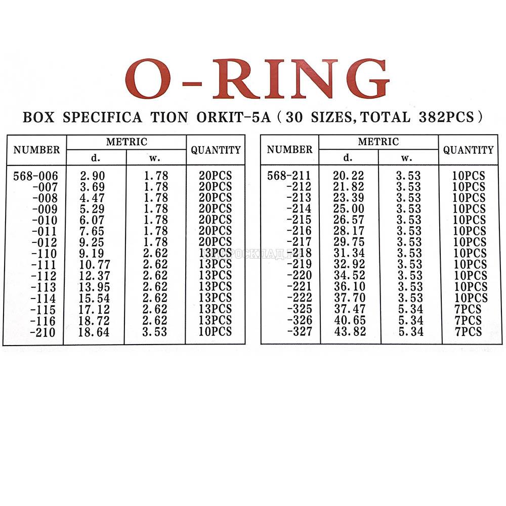 Набор колец 30 размеров 382шт.ORKIT-5A (NBR70 черный) (Китай)