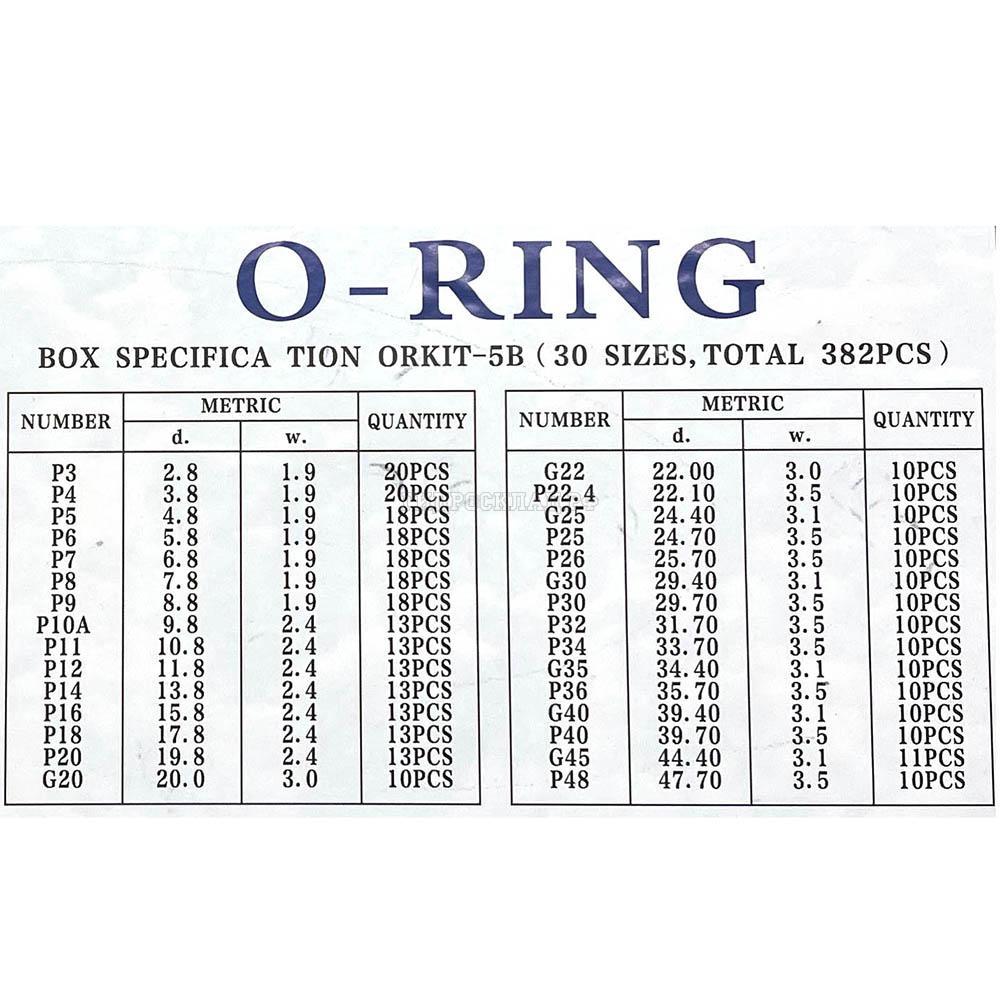 Набор колец 30 размеров 382шт. ORKIT-5B (NBR70 черный) (Китай)
