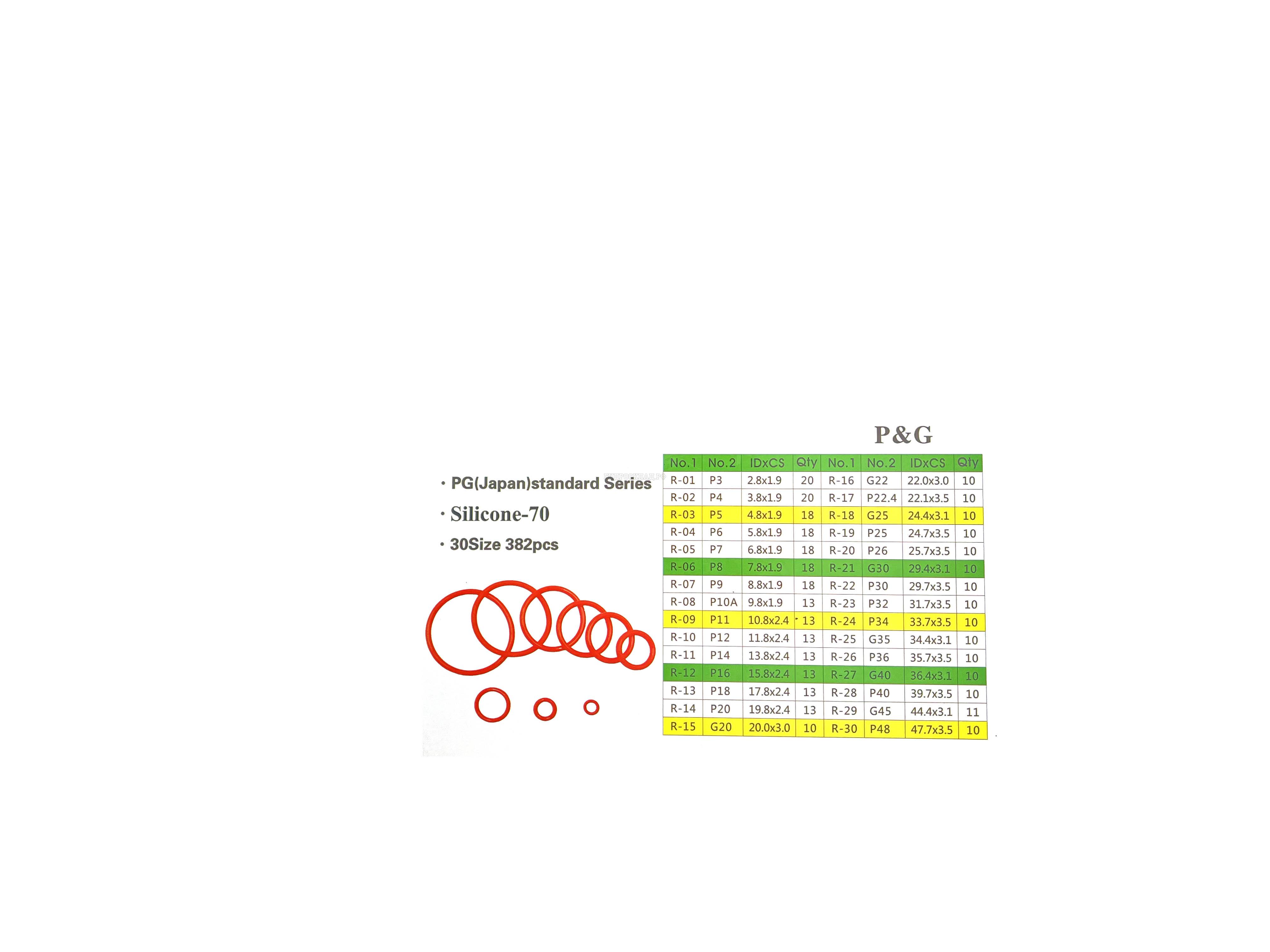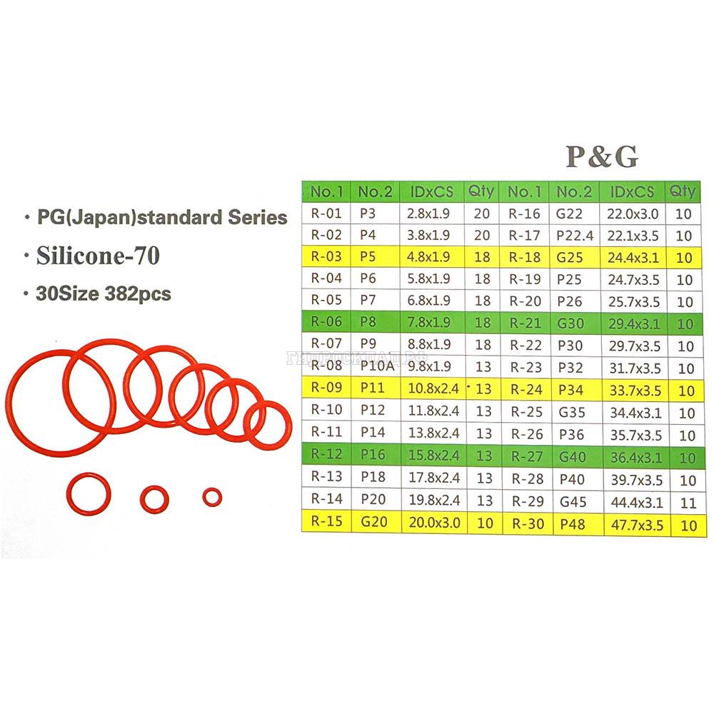 Набор колец 30 размеров 382шт.ORKIT Japan standard (Silicone-70) (Китай)