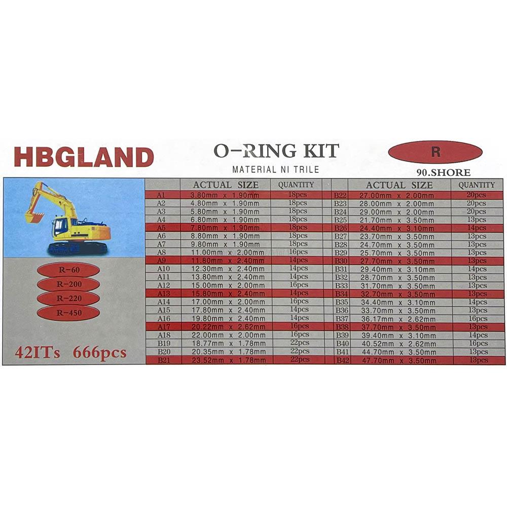 Набор колец для HYUNDAI 42 размера 666шт (NBR-90) (Китай)
