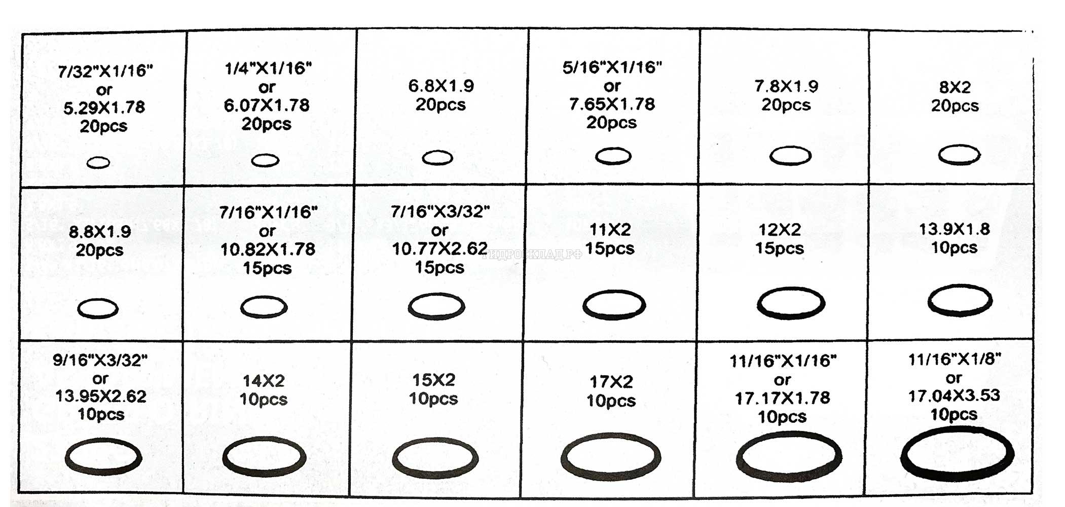 Главная страница→Каталог товаров→Кольца, шайбы, манжеты→Наборы колец→Набор колец O-Ring NBR Green для кондиционеров 270 шт (Китай)