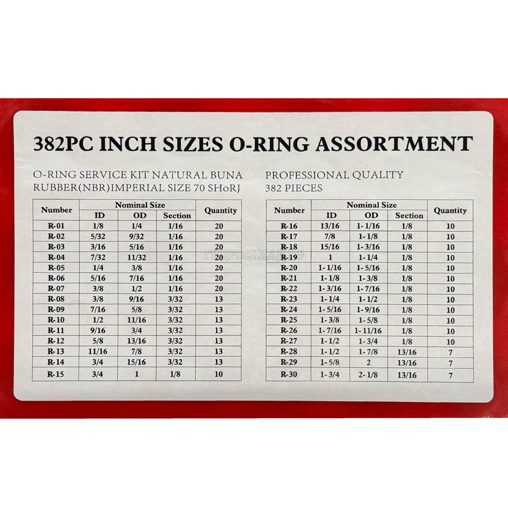 Набор колец 30 размеров 382шт.дюймовые размеры (NBR70 черный) (Китай)