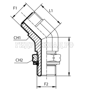 Адаптер 45° ORFS(ш) 1" - Metric(ш) 18X1.5 o.r.+ контргайка (Vitillo SPA)