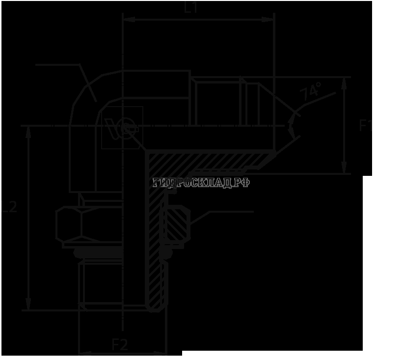 Главная страница→Каталог товаров→Адаптеры и соединения→SAE J514→Адаптер 90° JIC(ш) 1/2" - Metric(ш) 12X1.5 o.r.+ контргайка (Vitillo SPA)