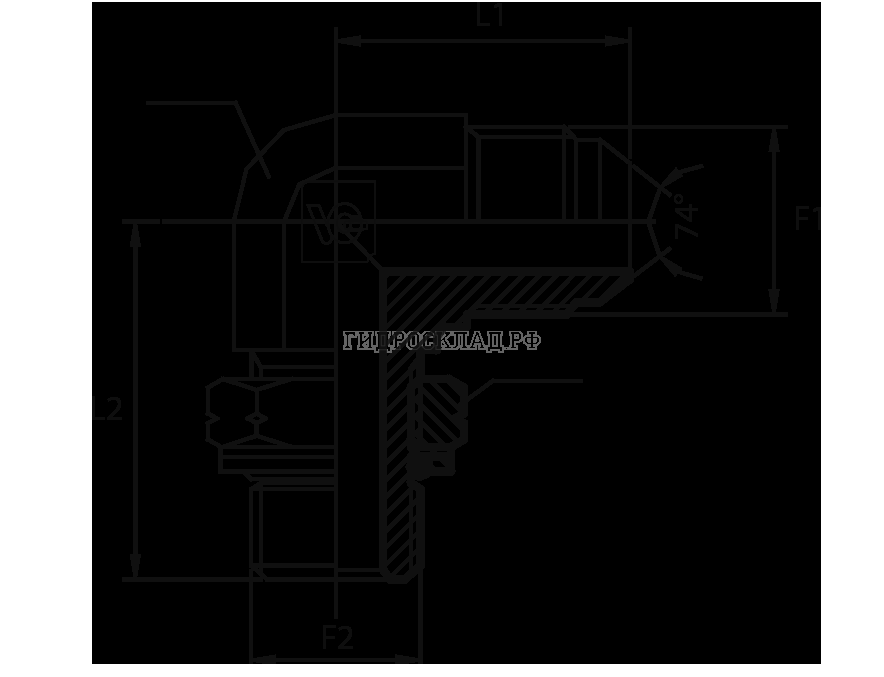 Главная страница→Каталог товаров→Адаптеры и соединения→SAE J514→Адаптер 90° JIC(ш) 9/16" - Metric(ш) 14X1.5 o.r.+ш+ контргайка (Vitillo SPA)
