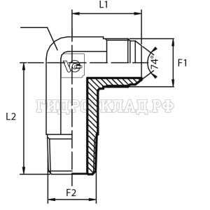 Главная страница→Каталог товаров→Адаптеры и соединения→SAE J514→Адаптер 90° JIC(ш) 1/2" - BSPT(ш) 1/8" L2=41.5 удлин. (Vitillo SPA)