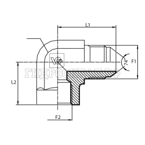 Главная страница→Каталог товаров→Адаптеры и соединения→SAE J514→Адаптер 90° JIC(ш) 1/2" - BSPP(F) 1/8" (Vitillo SPA)