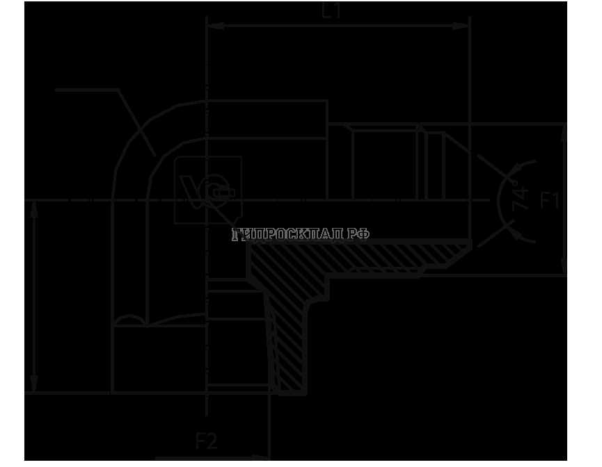Главная страница→Каталог товаров→Адаптеры и соединения→SAE J514→Адаптер 90° JIC(ш) 1/2" - NPT(F) 1/4" (Vitillo SPA)