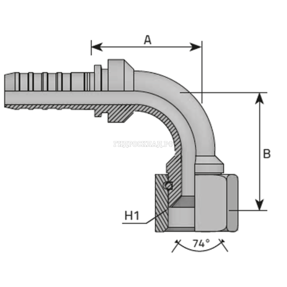 Главная страница→Каталог товаров→Фитинги→INTERLOCK→Фитинг JIC (г) 1.5/8” DN=32 (90°) InterLock (без зачистки) (thrust-wire nut)
