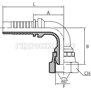 Фитинг BSP (г) 1/4" DN=06 (90°) S19 (Китай)