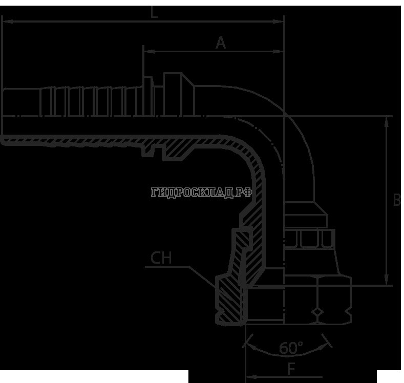 Главная страница→Каталог товаров→Фитинги→JIS (KOMATSU)→Фитинг JIS(KOMATSU) 14x1.5 DN=10 (90°) (Vitillo SPA)