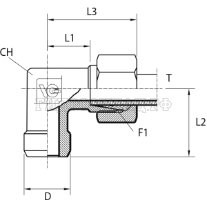 Главная страница→Каталог товаров→Контроль давления (Mini Press)→Фитинги→DKM→Адаптер ТС 90° P=22 30x2 - D=27 под сварку (Vitillo SPA)