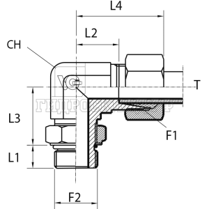 Главная страница→Каталог товаров→Контроль давления (Mini Press)→Фитинги→DKM→Адаптер ТС 90° P=35 45x2 - UNF 1.5/8"(ш) контргайка (Vitillo SPA)