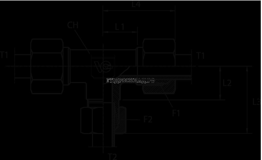 Адаптер ТС тройник P=10 18x1.5 - 14x1.5 P= 6 (гориз.) (Vitillo SPA)