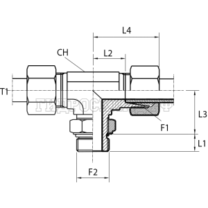 Адаптер ТС тройник P=12 20x1.5 - UNF 3/4"(ш) контргайка (гориз.) (Vitillo SPA)