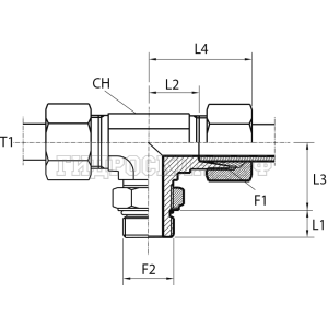 Адаптер ТС тройник P=12 18x1.5 - Metric 16x1.5(ш) контргайка (гориз.) (Vitillo SPA)