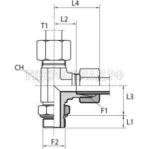 Адаптер ТС тройник P= 8 14x1.5 - BSPP 1/4"(ш) контргайка (верт.) (Vitillo SPA)