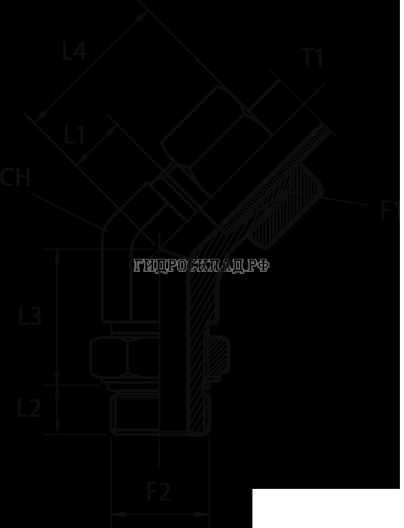 Адаптер ТС 45° P=10 16x1.5 - Metric 14x1.5(ш) контргайка (Vitillo SPA)