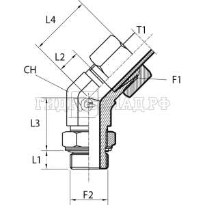 Адаптер ТС 45° P= 6 14x1.5 - Metric 12x1.5 контргайка+o.r. (верт.) (Vitillo SPA)