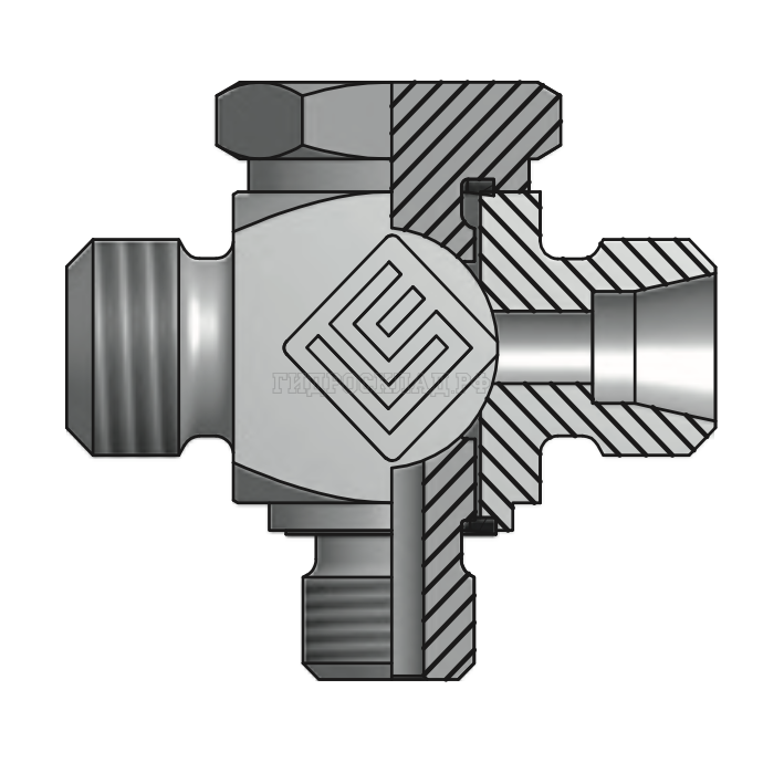 Главная страница→Каталог товаров→Контроль давления (Mini Press)→Фитинги→DKM→Адаптер ТС тройник P= 6 12x1.5 - BANJO(BSP)1/8" поворотный (Vitillo SPA)