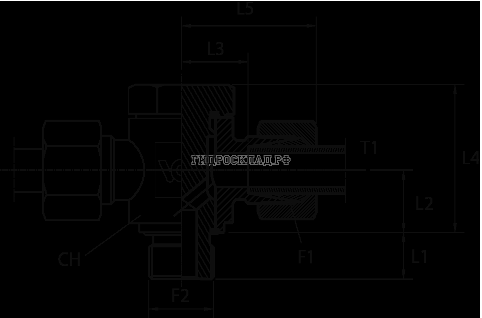 Главная страница→Каталог товаров→Контроль давления (Mini Press)→Фитинги→DKM→Адаптер ТС тройник P=42 52x2 - BANJO(Metric)48x2 поворотный (Vitillo SPA)