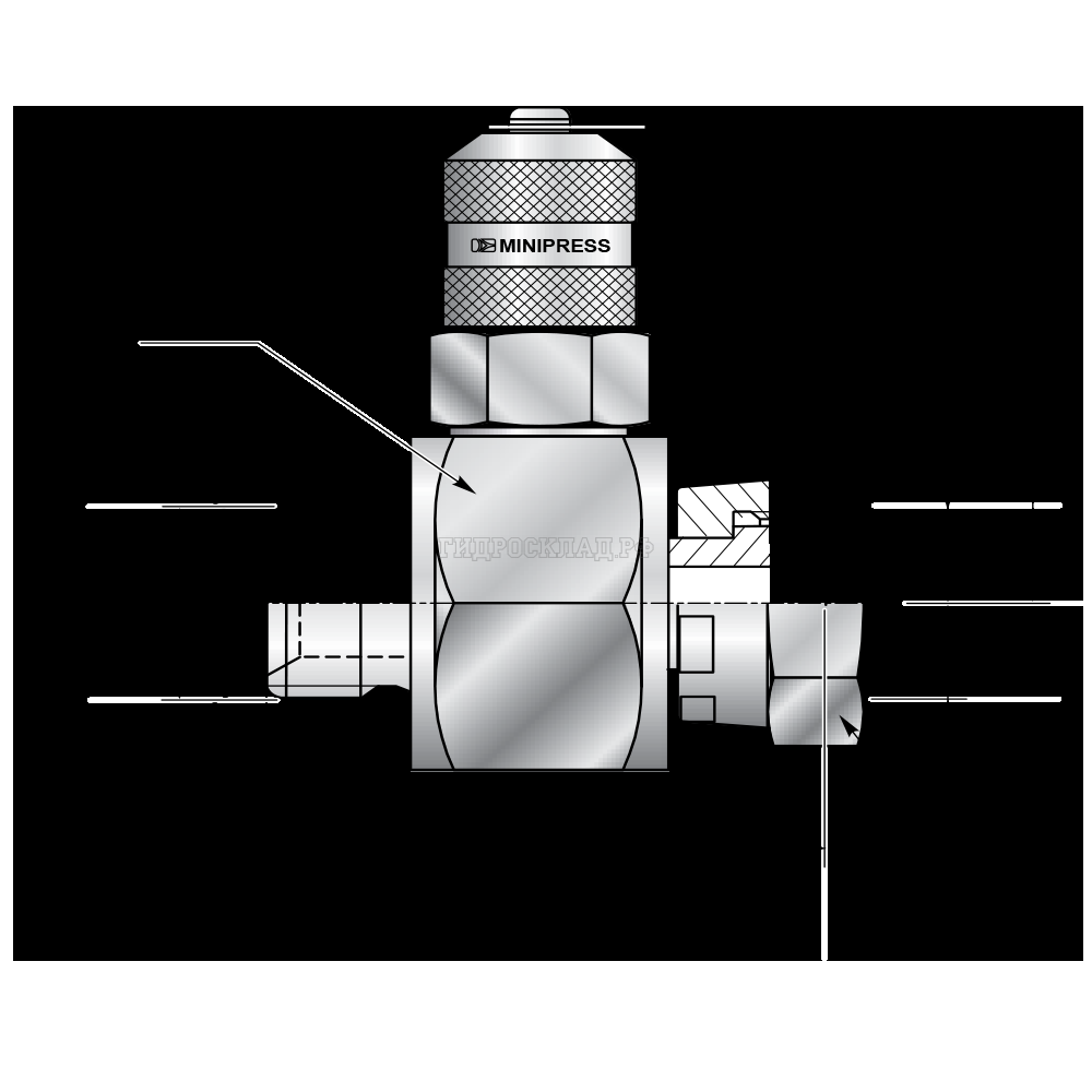 Главная страница→Каталог товаров→Контроль давления (Mini Press)→Адаптеры и соединения→Адаптер M16x2 - с точкой контроля BSP(ш)1/4"-BSP(г)1/4" - мет.колп.с пласт.держ. (Mini Press)