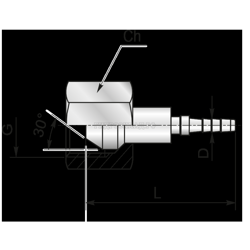 Фитинг BSP(г) 1/4" Ду=2мм (0°) нерж. (Mini Press)