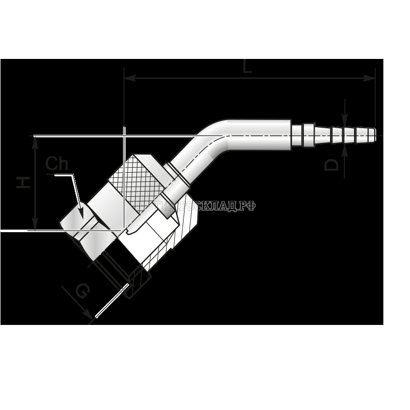 Главная страница→Каталог товаров→Контроль давления (Mini Press)→Фитинги→Фитинг к точке контроля M16x1.5 Ду=4мм (45°) Ch=19мм (Mini Press)