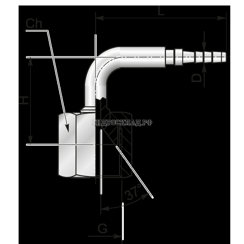 Фитинг JIC(г) 1/2"-20 Ду=4мм (90°) (Mini Press)