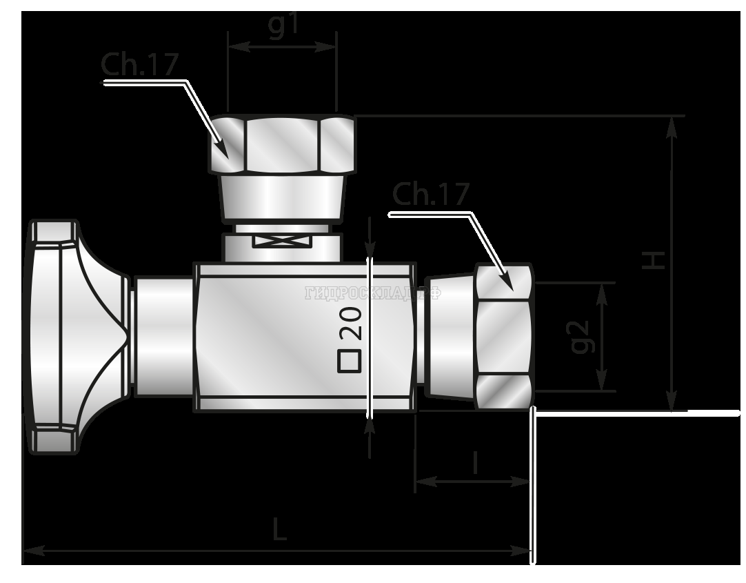 Кран манометра G1/4"(г) - G1/4"(г) 90° оцинкованный (Mini Press)
