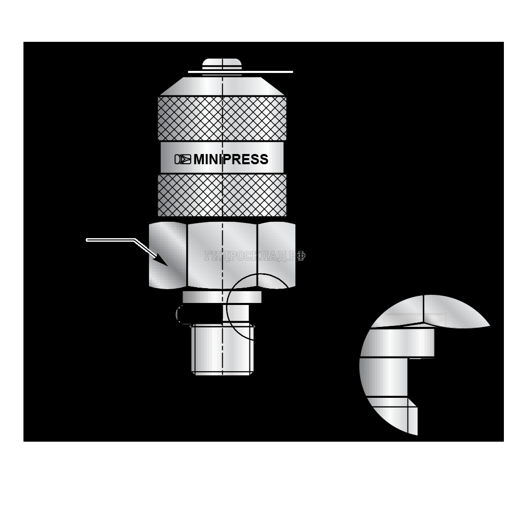 Главная страница→Каталог товаров→Контроль давления (Mini Press)→Точки контроля давления→Точка контроля давления M16x2 - UNF(ш) 9/16"-18 - мет.колп.с цеп. O-Ring type Е (Китай)