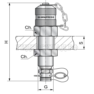 Главная страница→Каталог товаров→Контроль давления (Mini Press)→Точки контроля давления→Точка контроля давления M16x2 - Plug-in - мет.колп.с цеп. проходной (Mini Press)