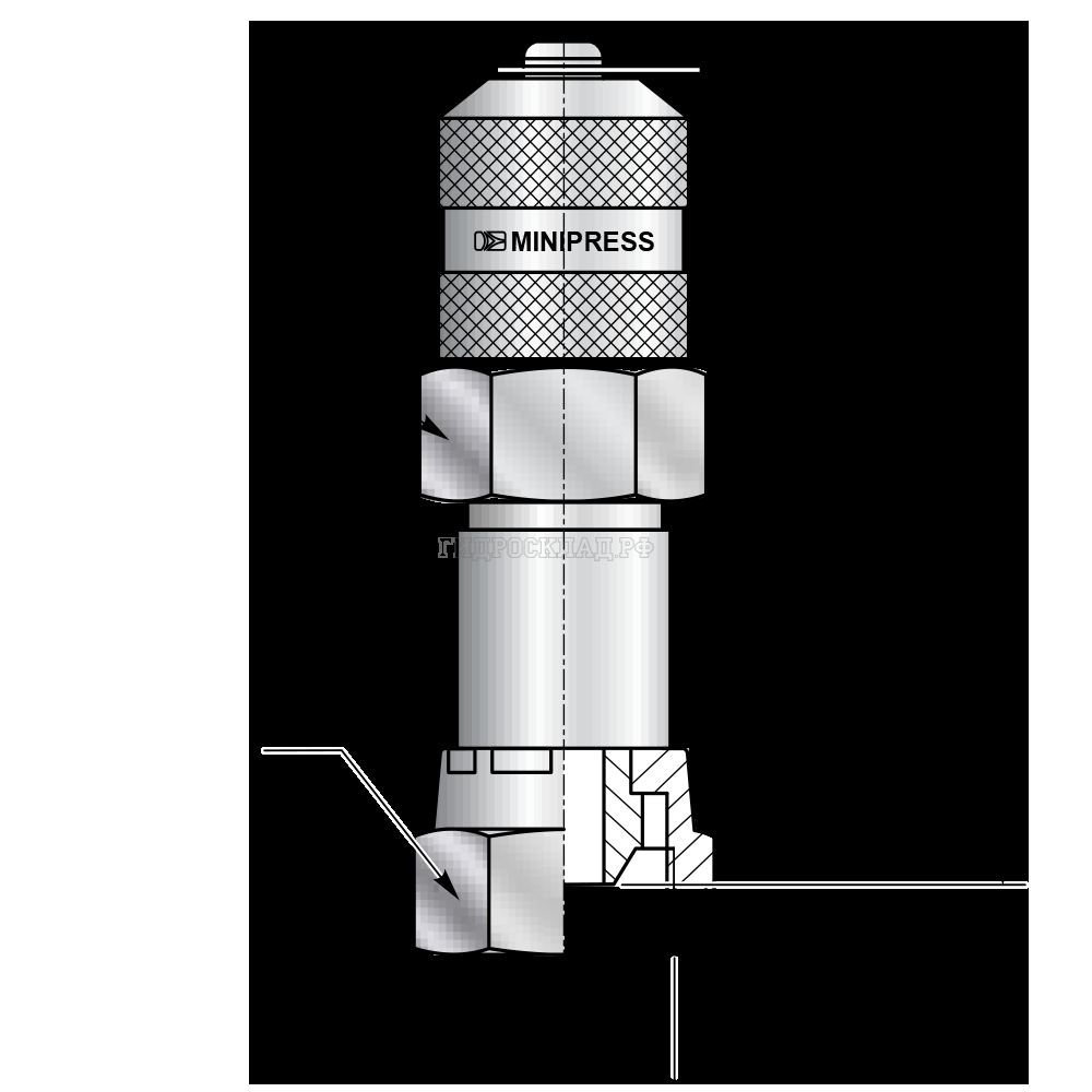 Точка контроля давления M16x2 - BSP(г) 1/4" - мет.колп.с пласт.держ. (Mini Press)