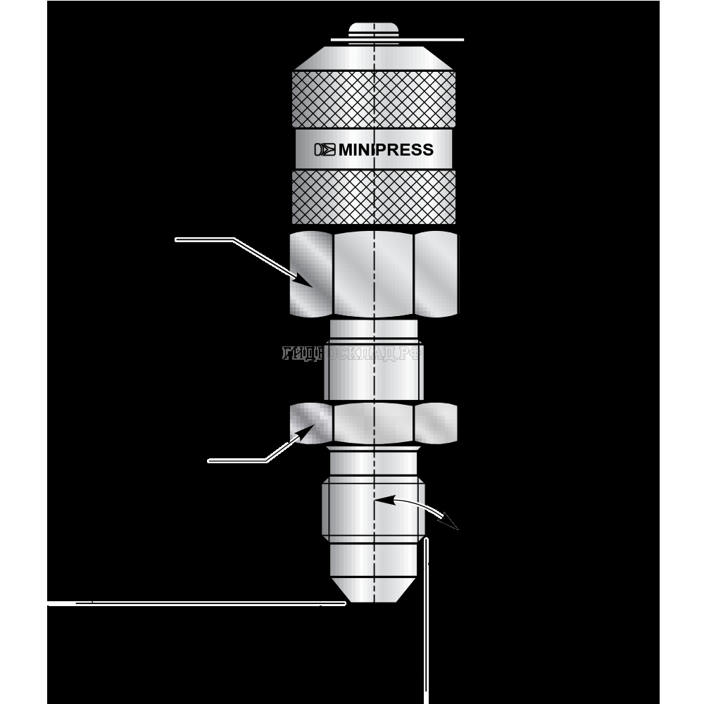 Точка контроля давления M16x2 - JIC(ш) 1/2"-20 (мет.колп.с пласт.держ.) проходной (Mini Press)