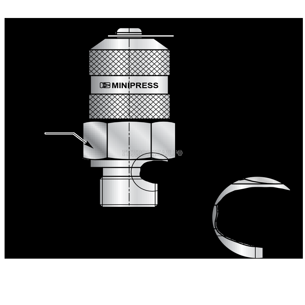 Главная страница→Каталог товаров→Контроль давления (Mini Press)→Точки контроля давления→Точка контроля давления M16x2 - Metric(ш) M27X1.5 - мет.колп.с пласт.держ. O-Ring type В (Mini Press)