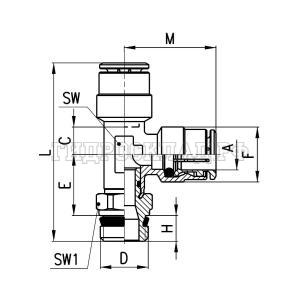 Фитинг цанга Тройник P=10мм - G1/4 (вертик.поворотный) (Camozzi)