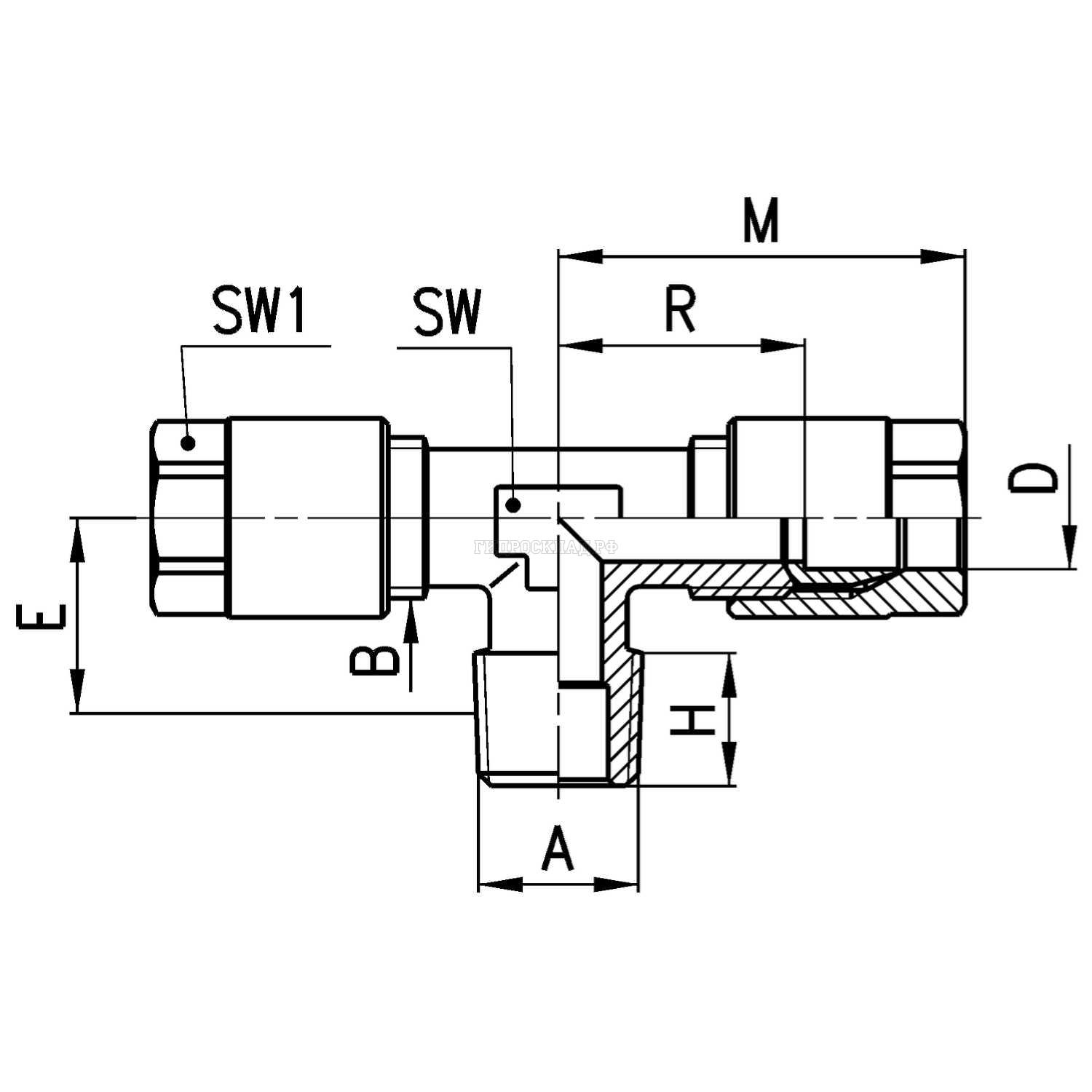 Фитинг биконический тройник P=10мм - R1/4 (горизонт.) (Camozzi)