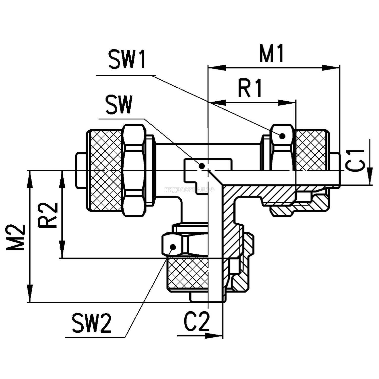 Главная страница→Каталог товаров→Пневматика→Фитинги и соединения→Фитинг с накидной гайкой Тройник P=10/8 - 6/4мм (Camozzi)
