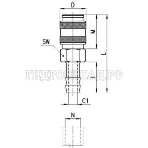 Главная страница→Каталог товаров→Пневматика→Фитинги и соединения→БРС (муфта) под шланг d=6мм Ду=5мм (Camozzi)