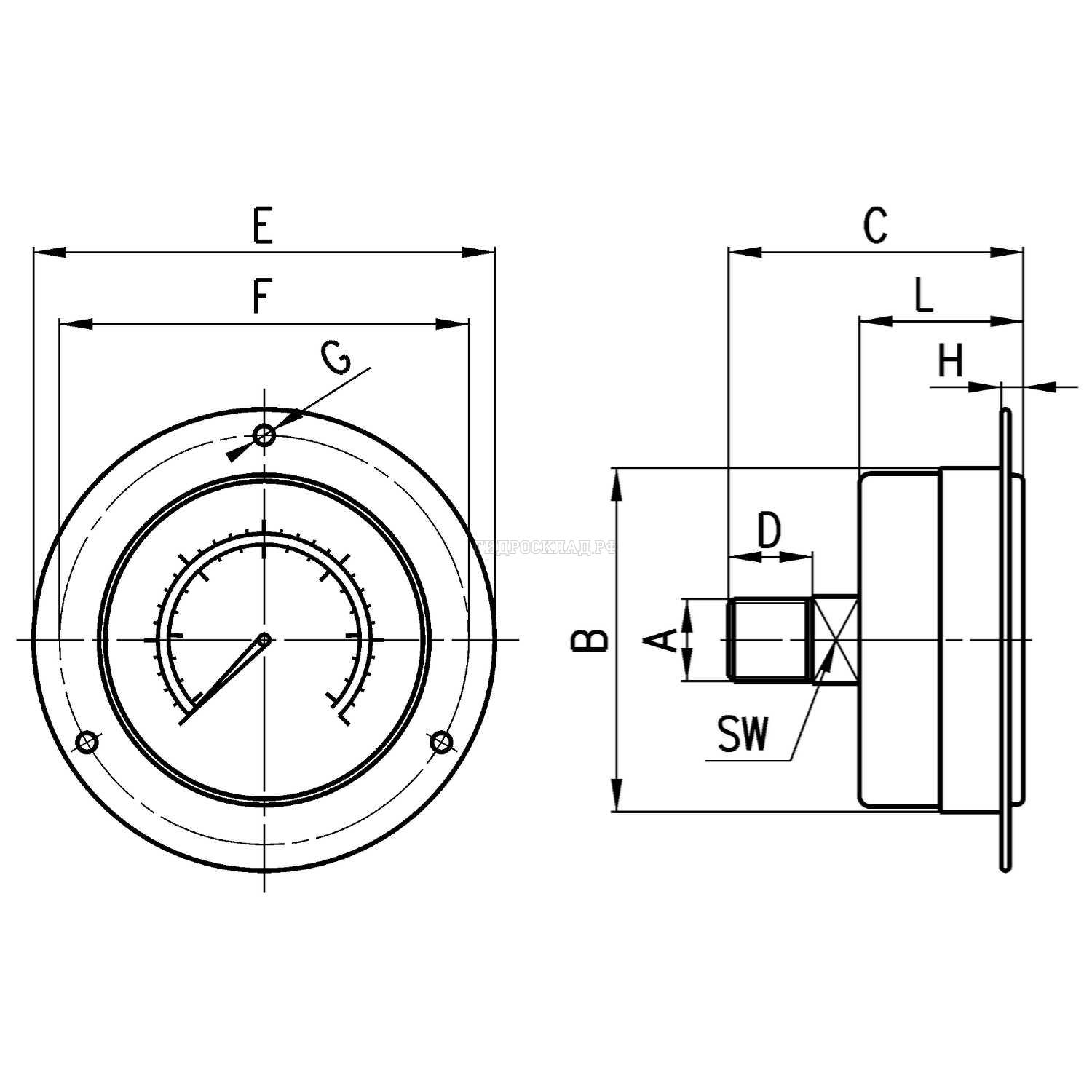 Главная страница→Каталог товаров→Пневматика→Манометры→Манометр 0-12 бар R1/8 41мм (под панельный монтаж) (Camozzi)