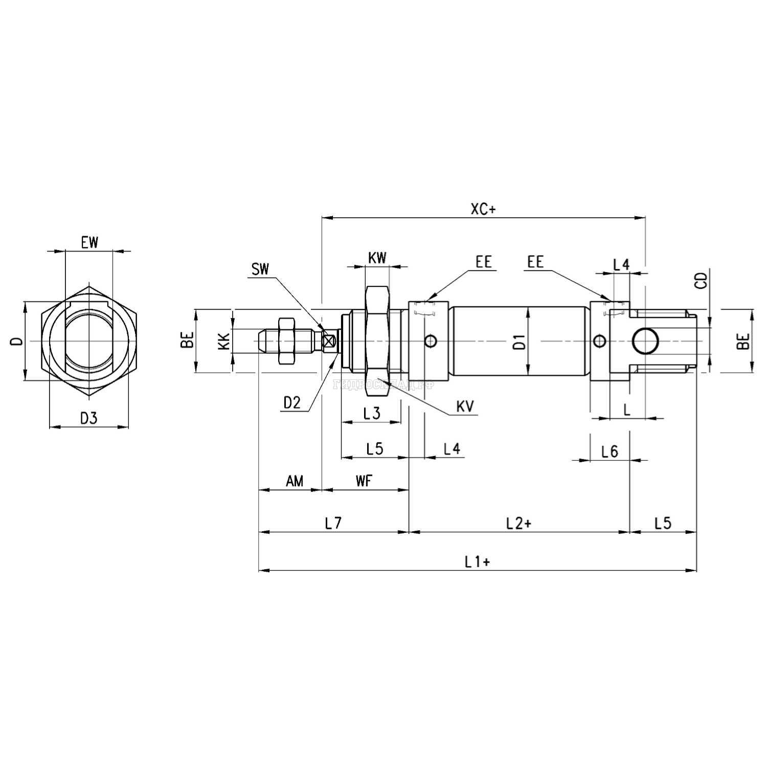 | Ход* min - max | Серия 16: o 8 – o 10: 10 - 250 мм / o 12: 10 - 300 мм / Серия 24 и 25 o 16: 10 - 600 мм / o 20 – o 25: 10 - 1000 мм |