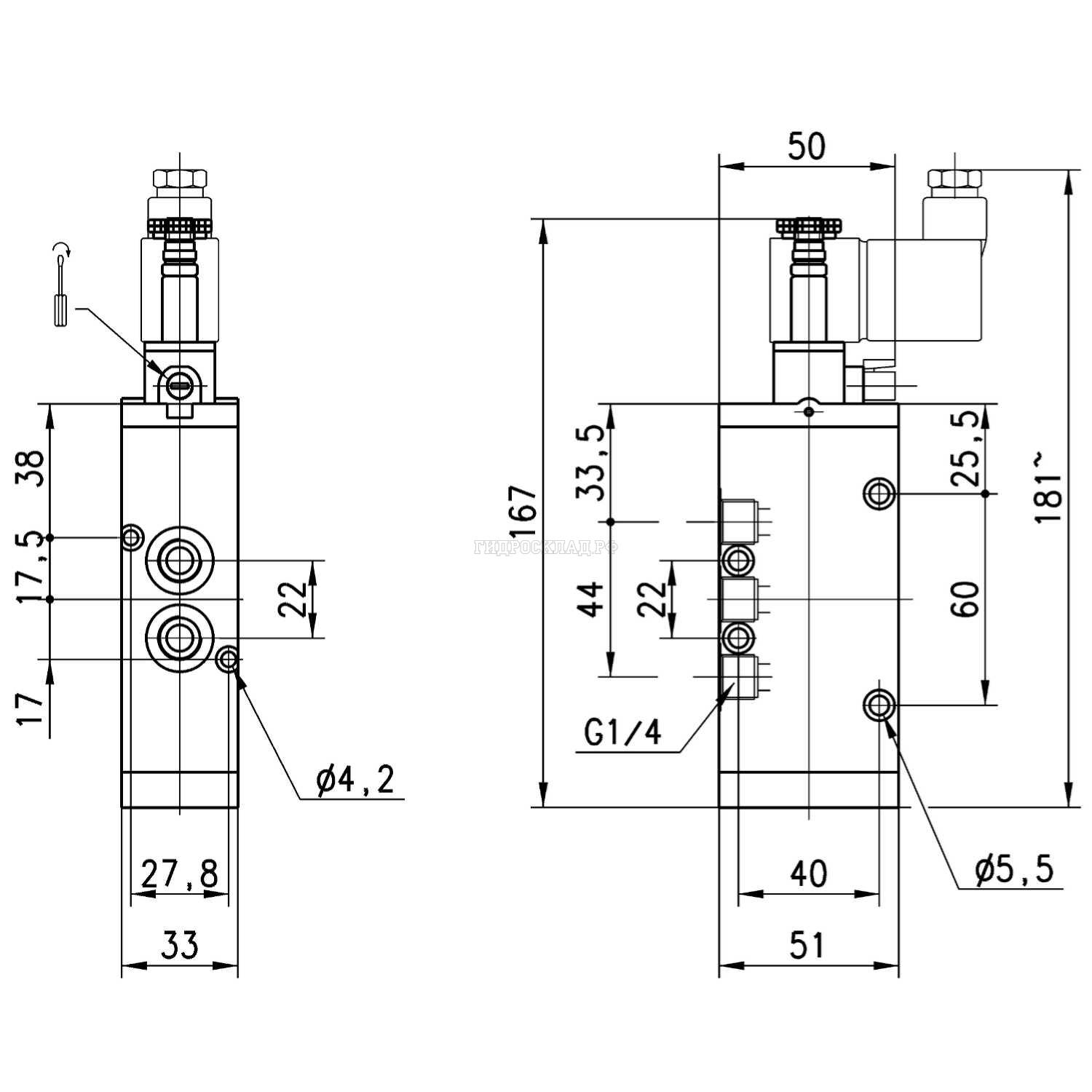 Распределитель электропневматический 5/2 G1/4 двухсторонний (Camozzi)