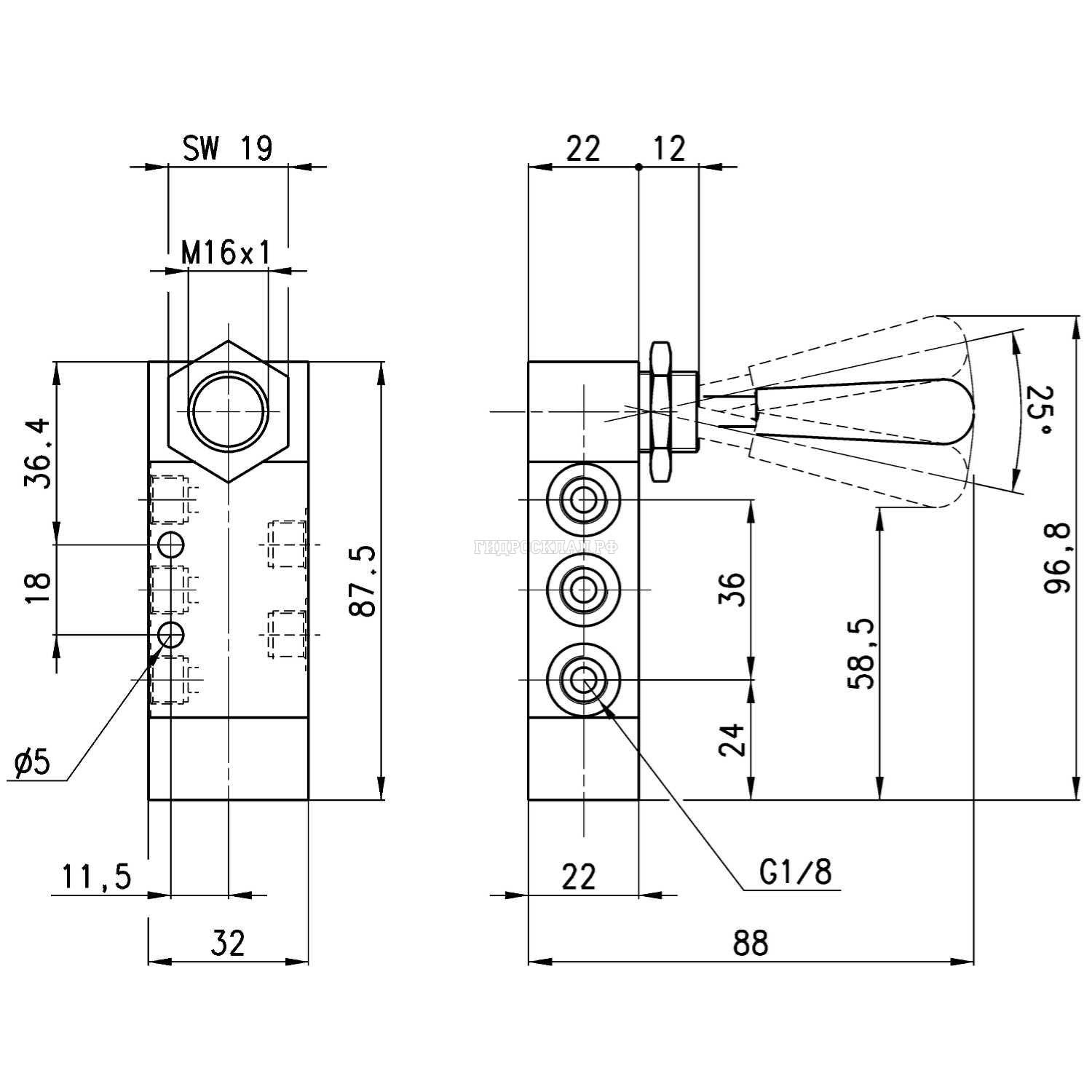 | Функция распределителя | 3/2, 5/2, 5/3 лин./поз. |